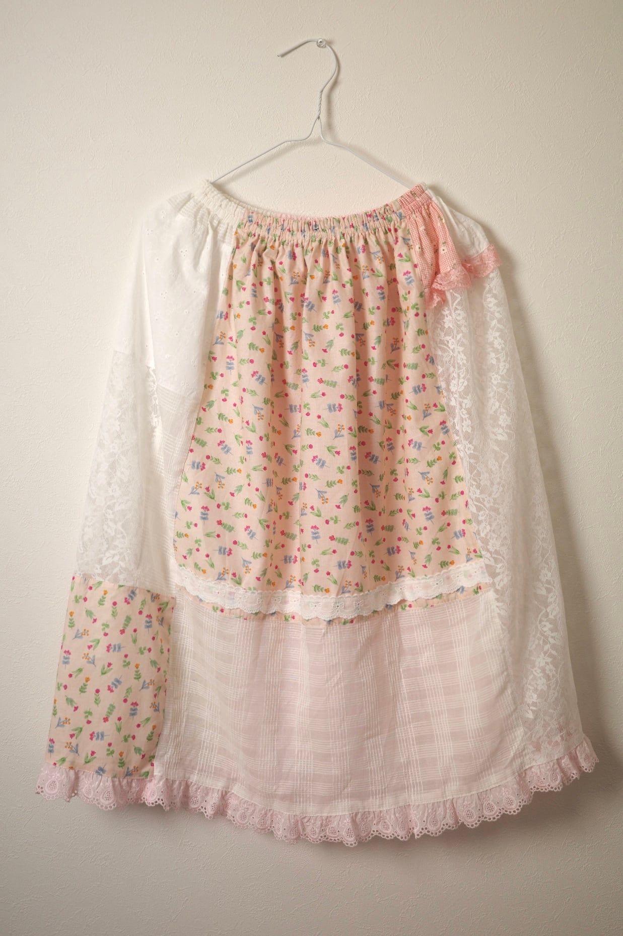 オールシーズン履けるしどこを前にして履いてもかわいいパッチワークのスカートです。