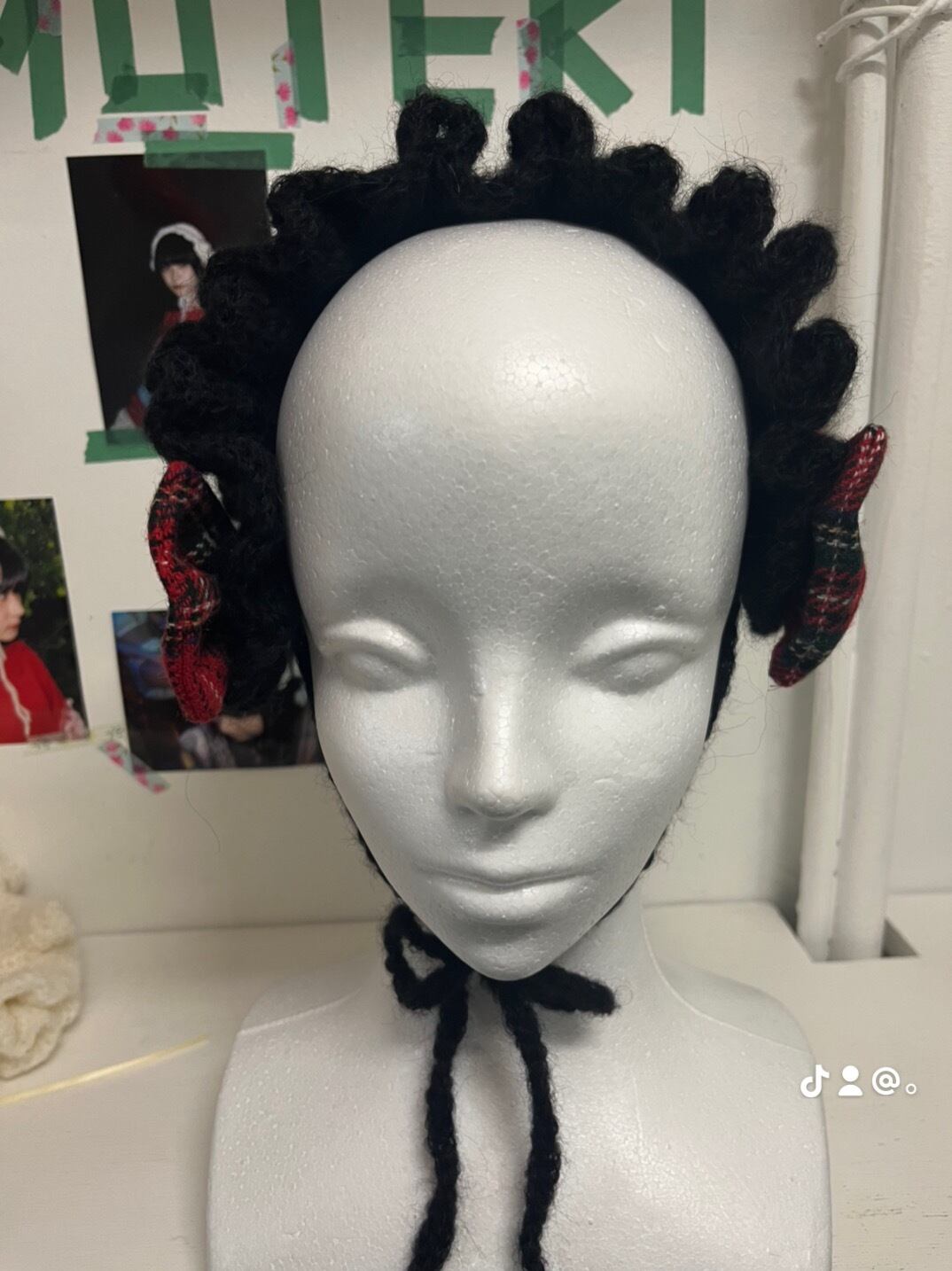 ニットヘッドドレス(赤チェック)